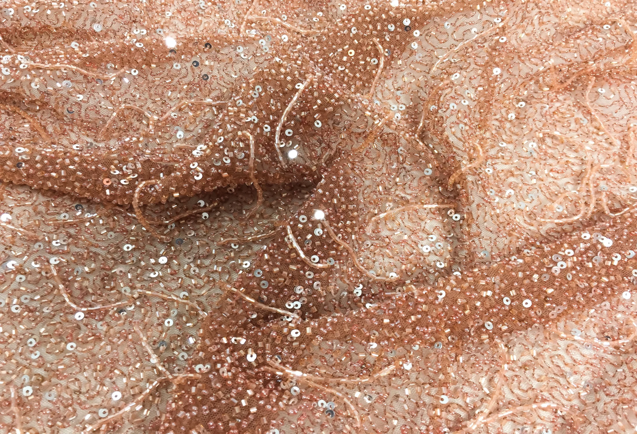 Shiny Light Peach/Pudra Sequins Handmade Net -SAMPLE