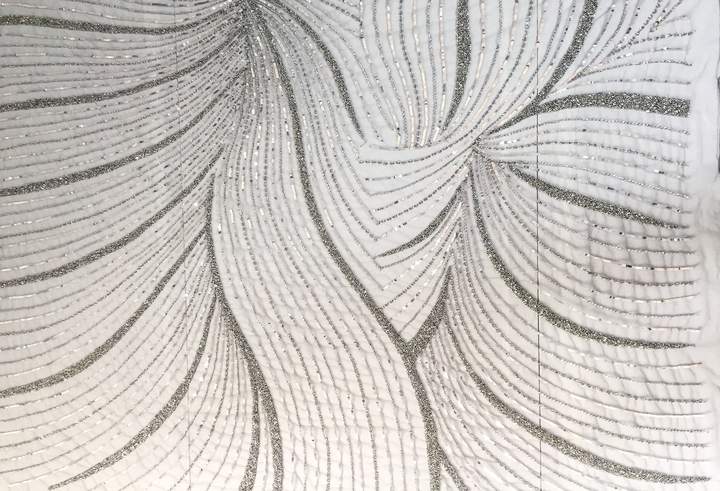 Curvy silver lines on a gray lace-handmade lace