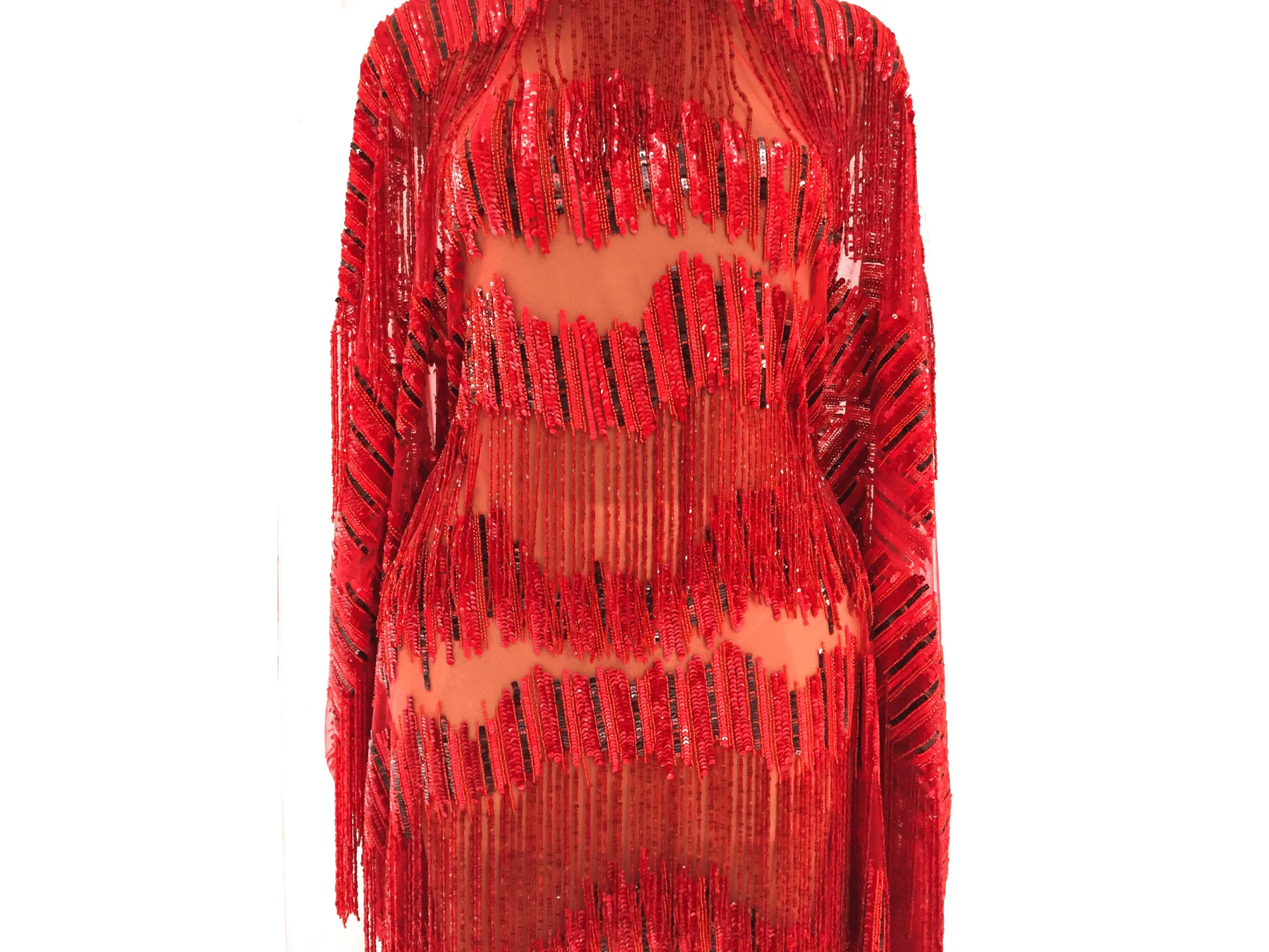 Handmade Fringes&sequines red lace—