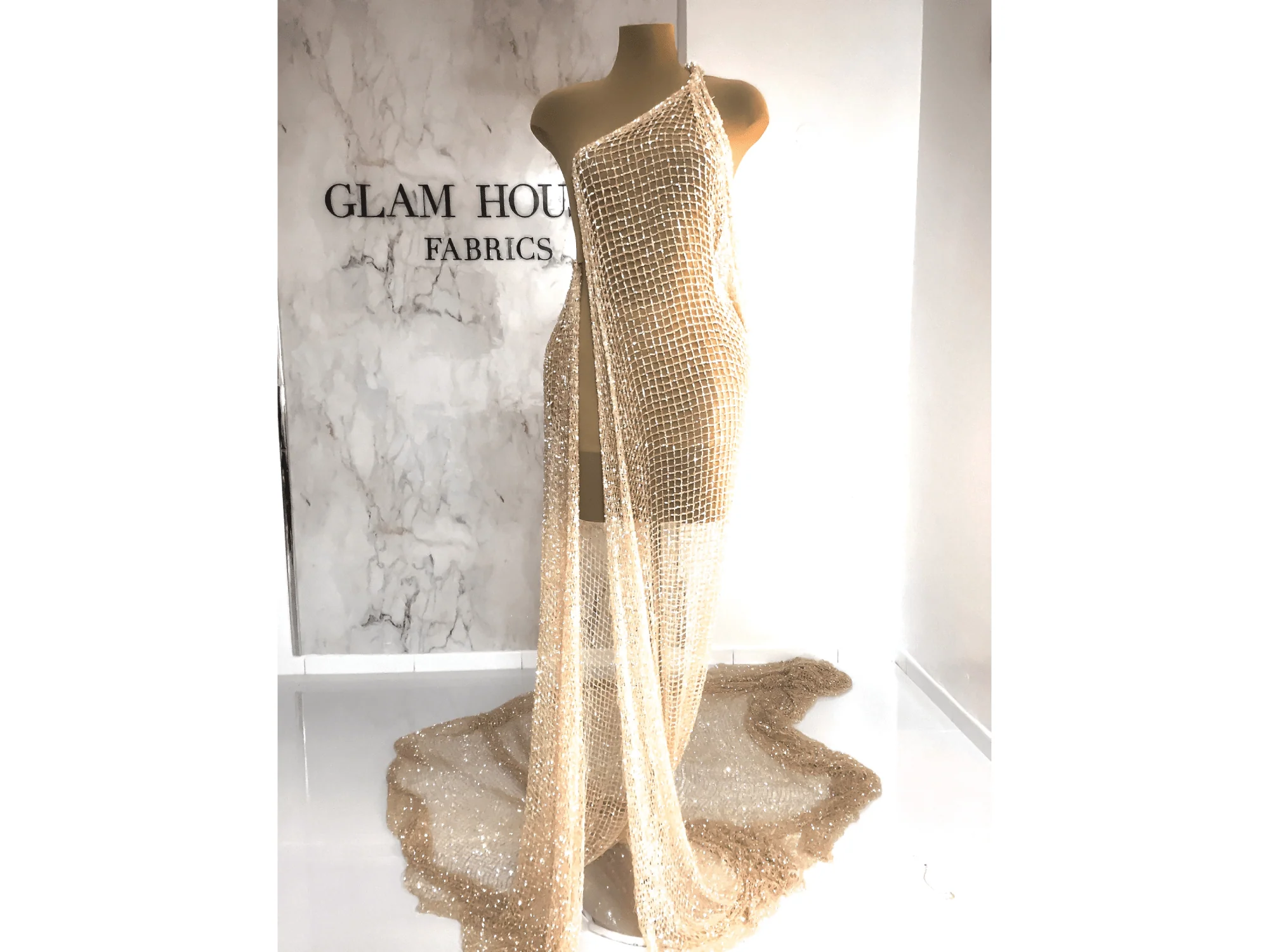 Shiny Light Peach/Pudra Sequins Handmade Net—